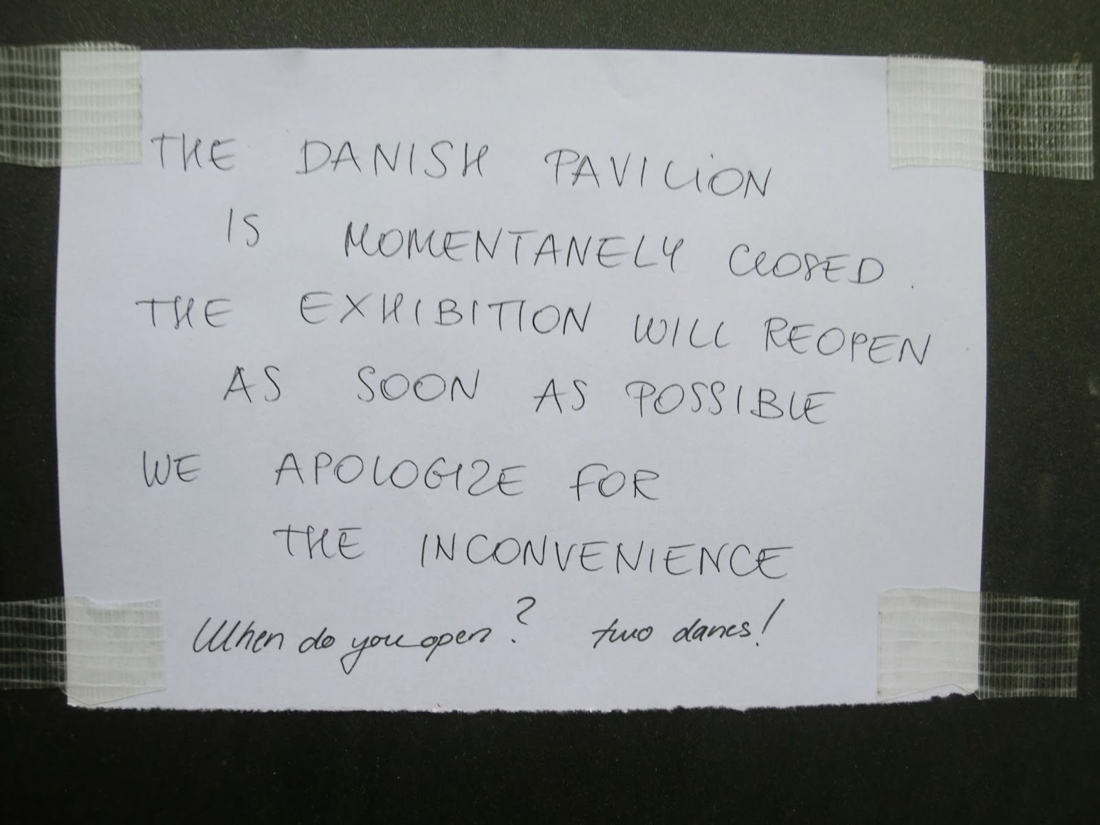 Selten funktionierte während der Biennale etwas nicht wie gewünscht, z. B. der dänische Pavillon.